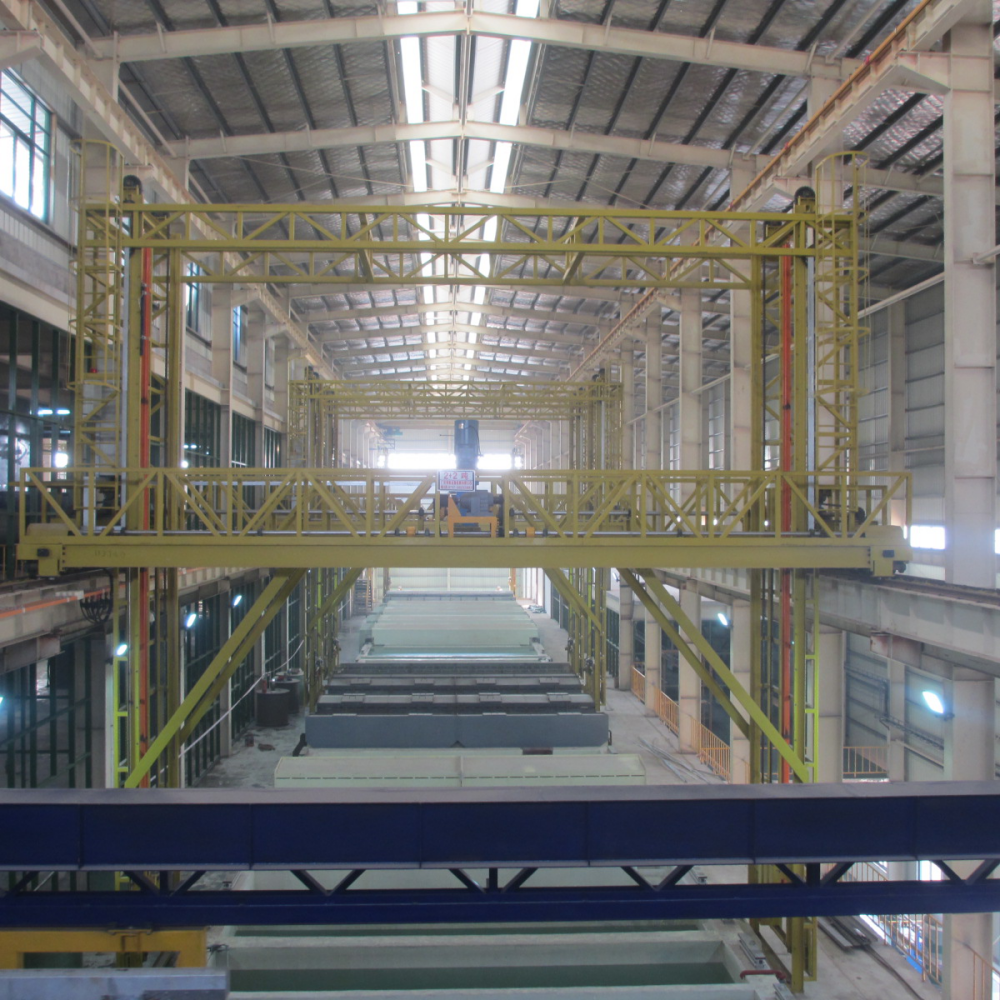 2、直線(xiàn)式立式氧化生產(chǎn)線(xiàn),空中回梁方式,為我公司獨(dú)創(chuàng);